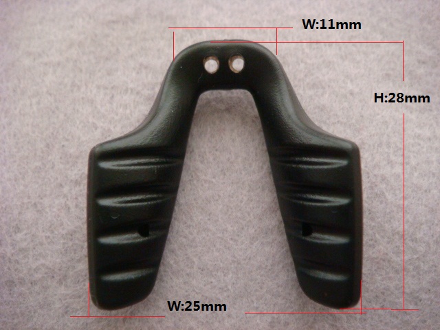 t2g308 saddle bridge nose pads is one kind of special eyeglass nose pads whose shape looks like one saddle, the top size is 11mm width,the bottom is 25mm,height 28mm. the following picture is size of t2g308: